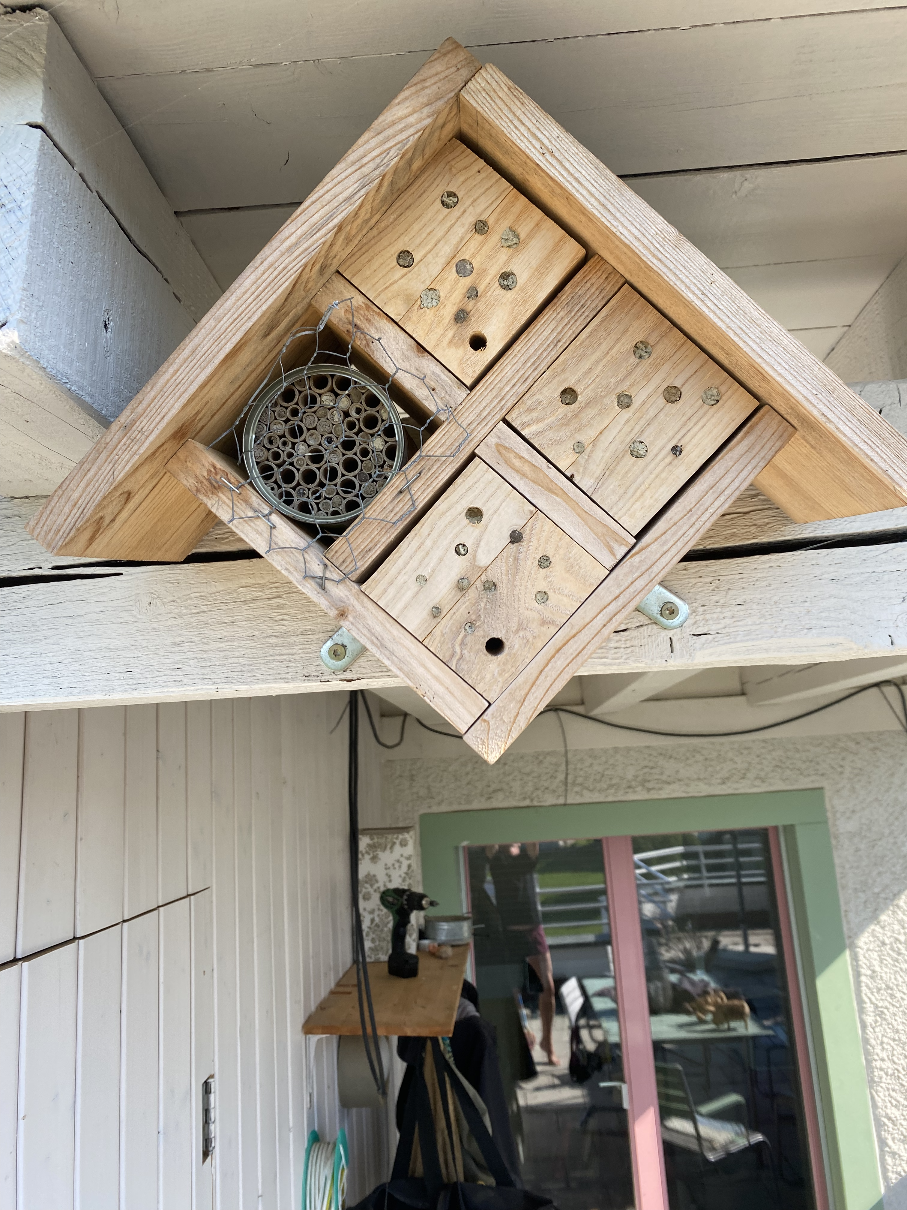 Habe mir ein sogenanntes „Insektenhotel“ gebastelt. Wie man sieht sind die Zimmer bezogen.